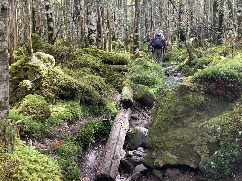 白駒の池の周りを一周しました。歩道が整備されていて歩きやすかったです。もののけの森では苔でみどりの絨毯のようでした。