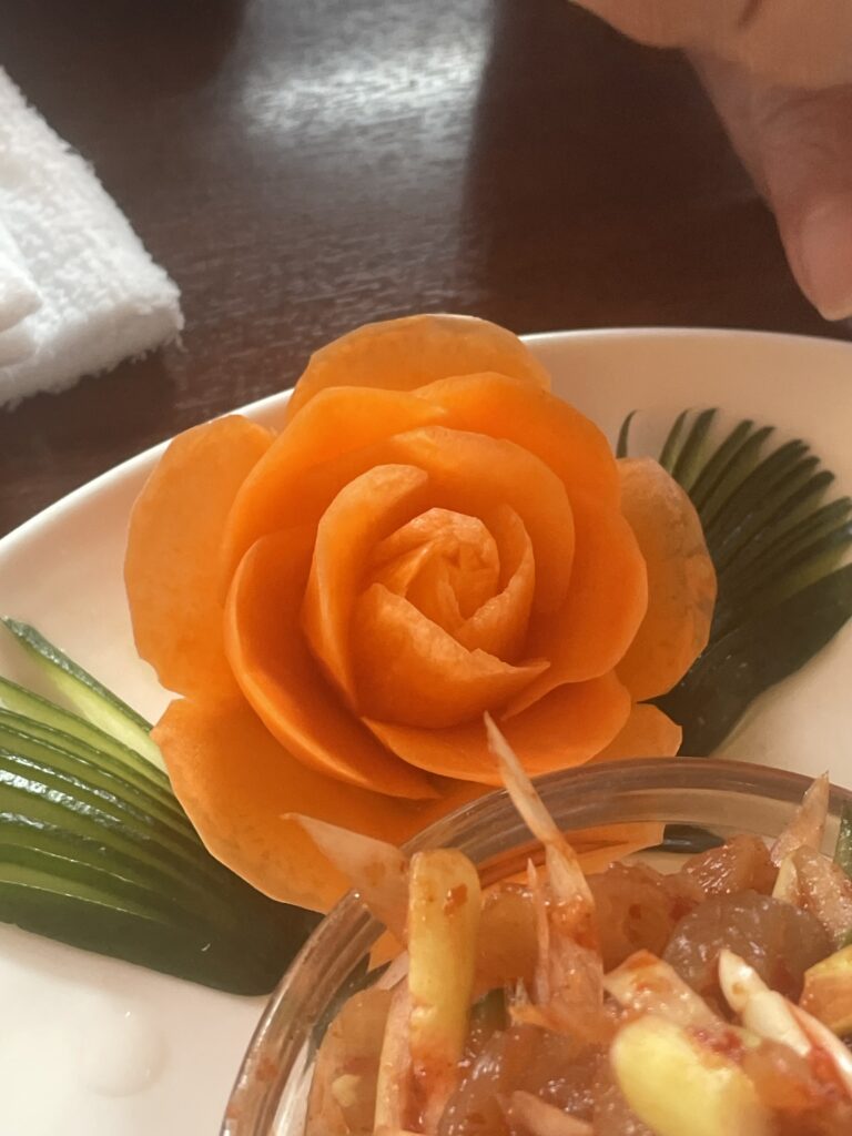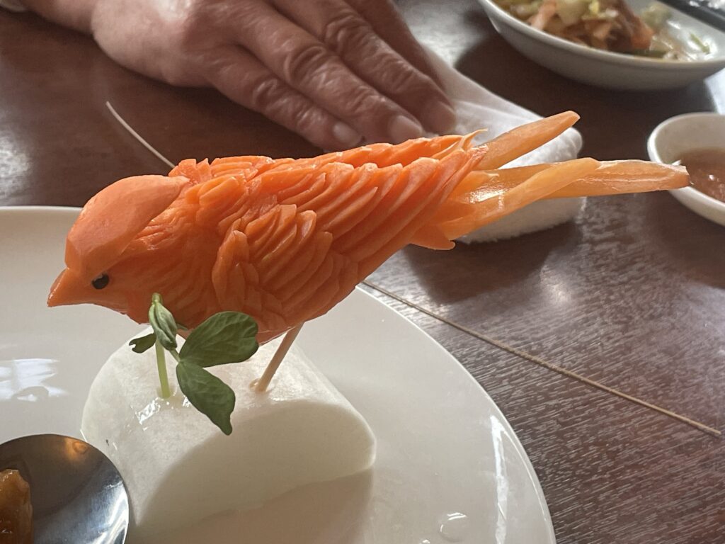 料理に出てきた芸術作品 2026年1月31日 最終更新日時 : 2026年2月2日 harima 1月31日(土)は、靖国神社近くの麒麟宴市ヶ谷店で退職教頭副校長会連合会の新年会がありました。小学校、中学校、高等学校のメンバーが集まりました。にんじんを使った料理長の芸術作品に驚きました。