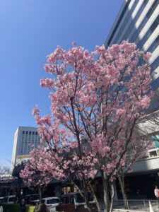 今日は3月24日(火)です。有楽町駅前に綺麗な花が咲いています。ソメイヨシノではないので何の花かなと思い、ChatGPTに聞いてみました。オカメザクラという返答でした。初めて聞く名前です。