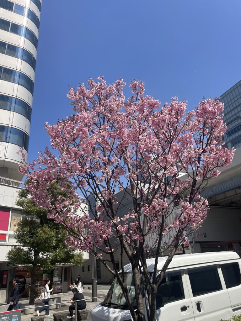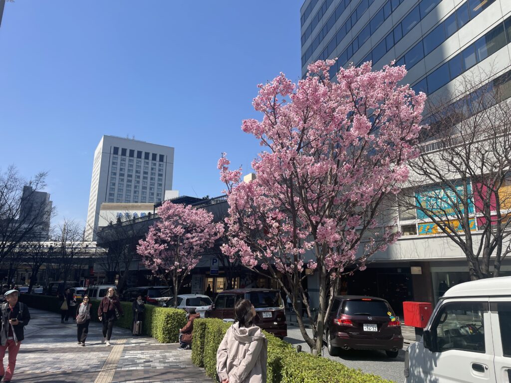 今日は3月24日(火)です。有楽町駅前に綺麗な花が咲いています。ソメイヨシノではないので何の花かなと思い、ChatGPTに聞いてみました。オカメザクラという返答でした。初めて聞く名前です。
